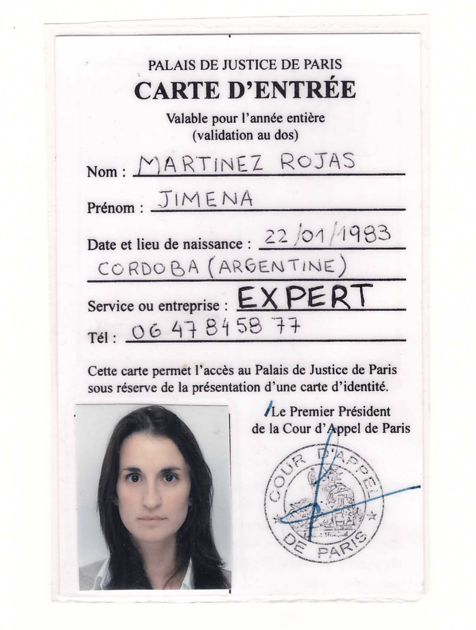 Carte professionnelle d'expert judiciaire - Cour d'Appel de Paris